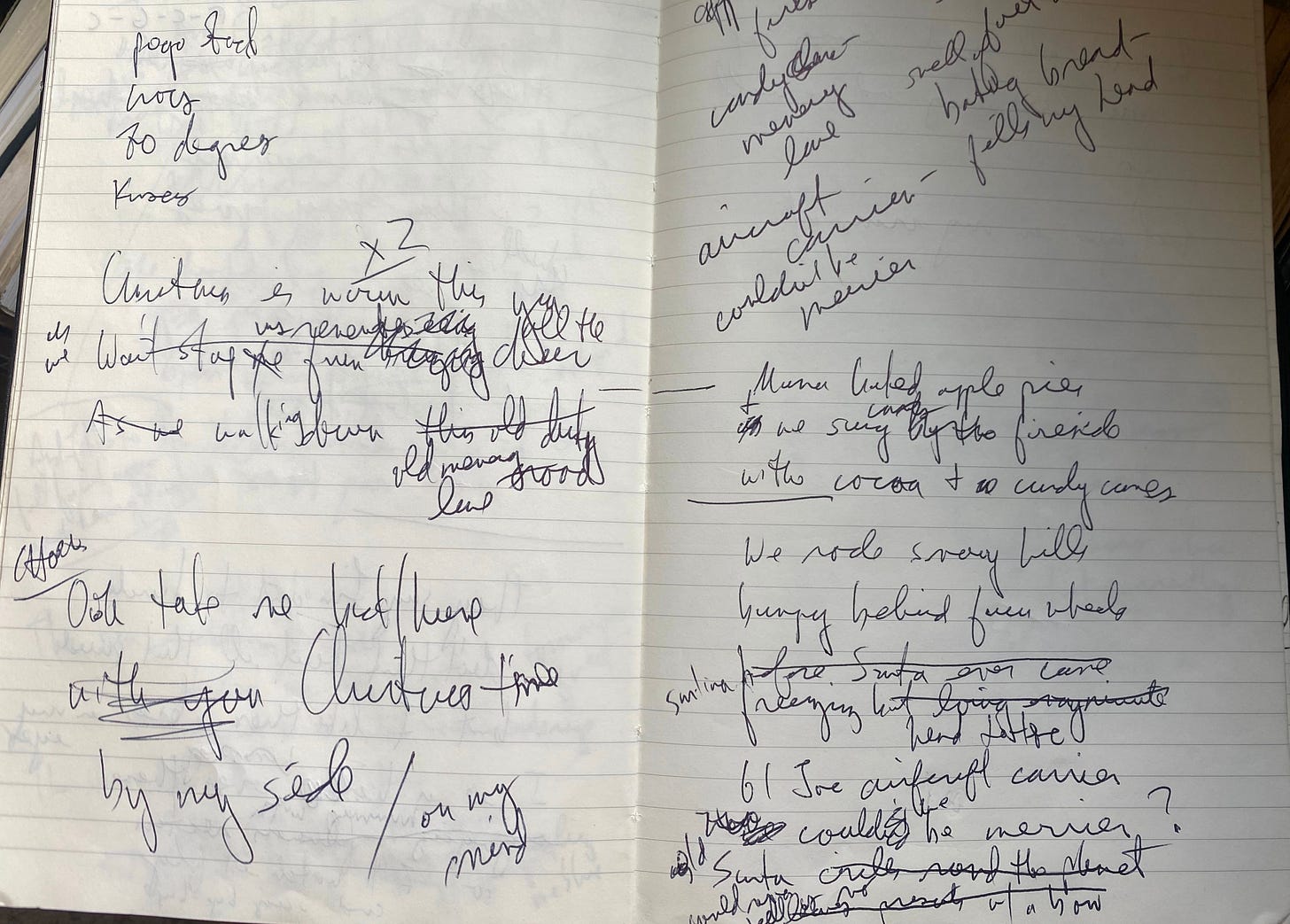 As I look back through my Moleskine of song notes, I found a page of mostly-forgotten thoughts about homemade holiday treats, snowy memories and the behemoth GI Joe aircraft carrier my brother received from Santa one year that I toy-fully and embarrassingly tried to rhyme with merrier. Ha!