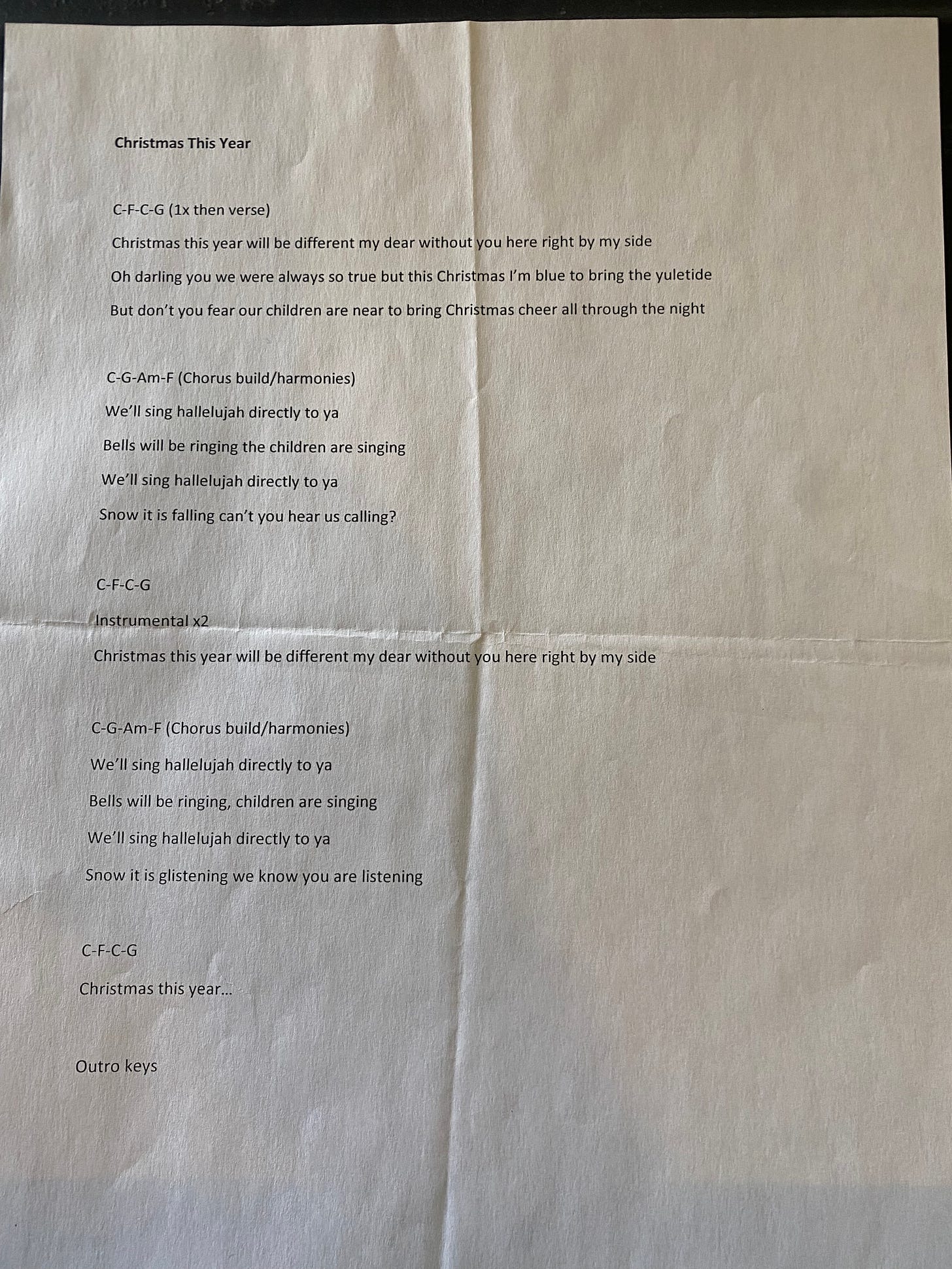 Here’s a stripped-down version of Christmas This Year I recorded today for my paid subs on this Substack adventure and a photo of the original lyric sheet from our recording. Thank you for reading everyone and all the best to you!