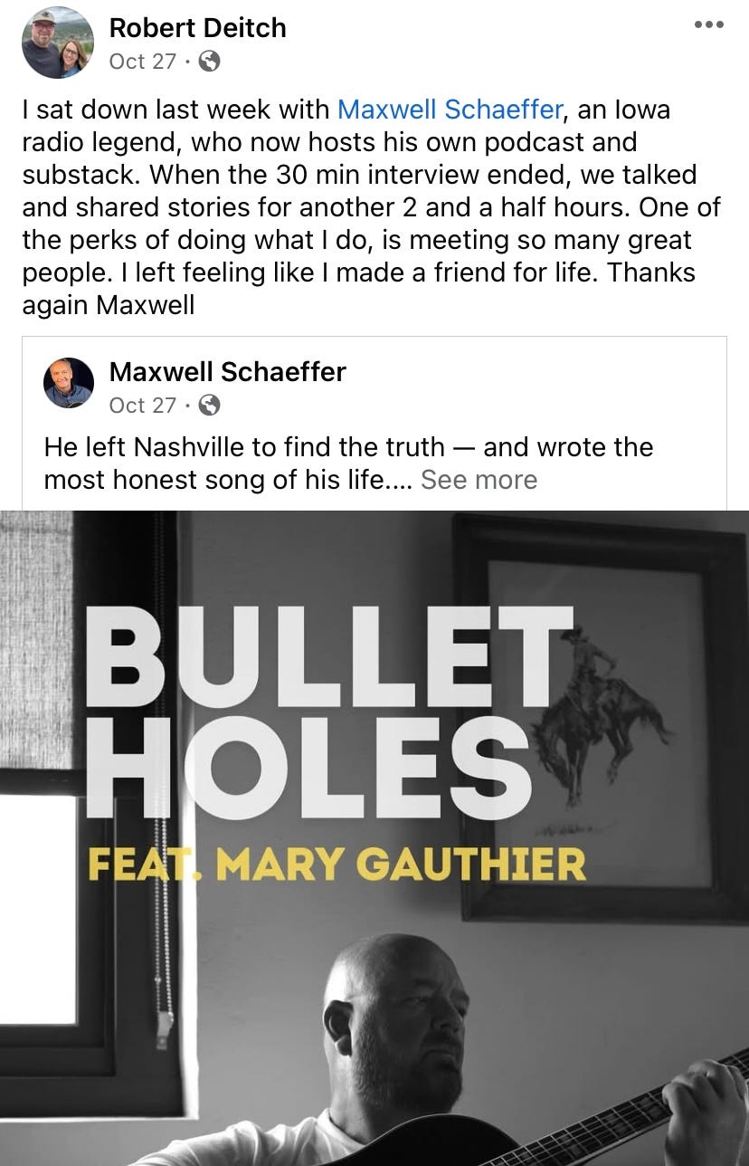 Maxwell and I continue to bond over songwriting. We’ve shared many songs with each other, chatting about our songwriting heroes (he’s a huge Dan Fogelberg fan) and loved on the power of music and story together. Unbeknownst to many, well before Maxwell moved to Iowa to create a hall-of-fame legacy as a radio DJ and good dude, he was a musician and performer fully intent on it as his pathway to the future. His travels before Iowa start in Hershey, Pennsylvania and move through Austin, Texas, Southern California and Florida until making the Hawkeye State home.