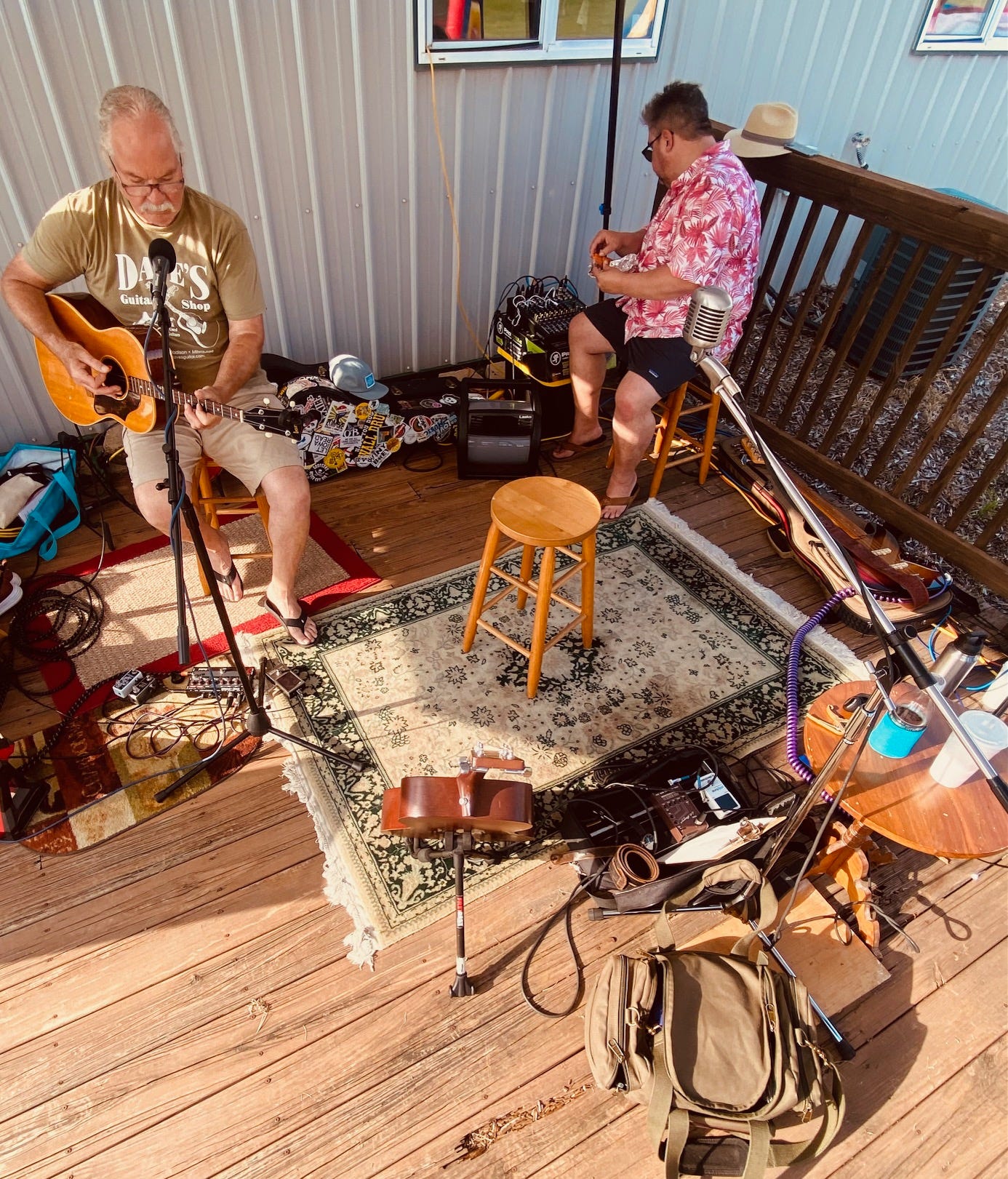I woke up Sunday morning and was immediately antsy with nervous prepper energy. I gathered numerous materials as I would need to bring different equipment to each show. The logistics and timing were such that I could swing back home immediately after the Biergarten show and re-pack for the Indianola gig. My arrival time to the latter would be about 5:30 giving us a full hour for set-up.